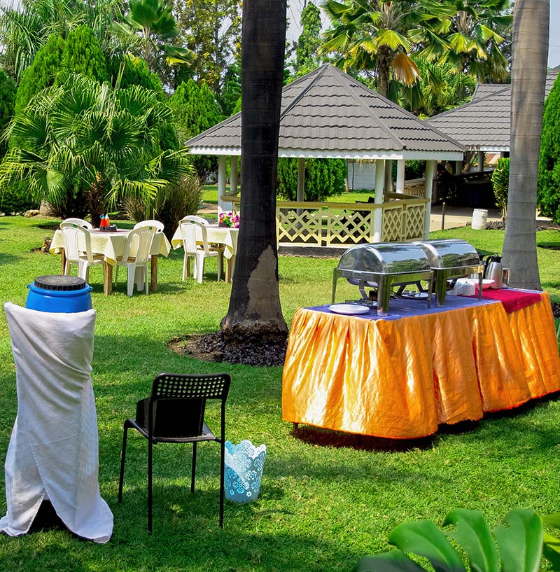 Get the lush green gardens, tables/seats for the bridal party, tables for serving stations and gifts, power and catering services at an affordable rate.